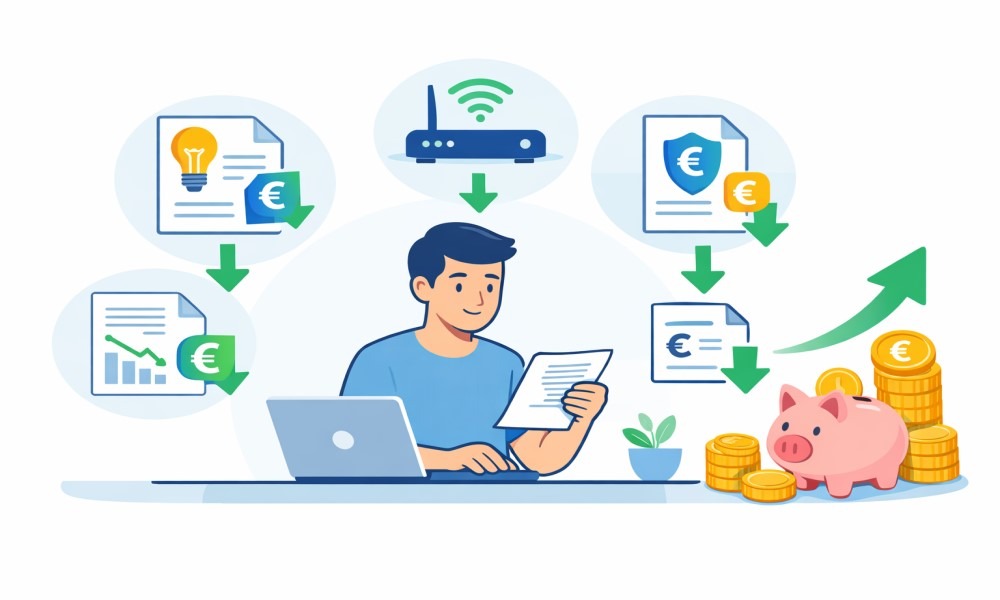 Sparpotenzial: 100–300 € pro Jahr (besonders bei Mobilfunk).
